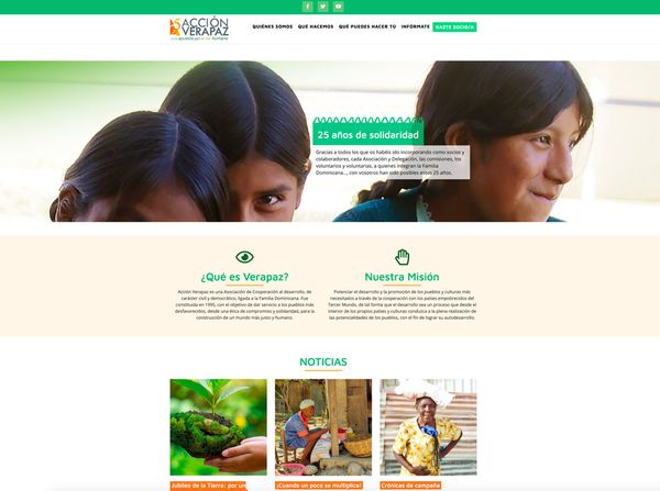 Acción Verapaz, la asociación de cooperación al desarrollo de Familia Dominicana, acaba de rediseñar toda su página web. Lo hace este año, en el que celebra su 25 aniversario y quiere relanzar su misión y sentido, su trayectoria y sobre todo, sus acciones concretas en favor de la justicia, la promoción y desarrollo en los países más pobres.
