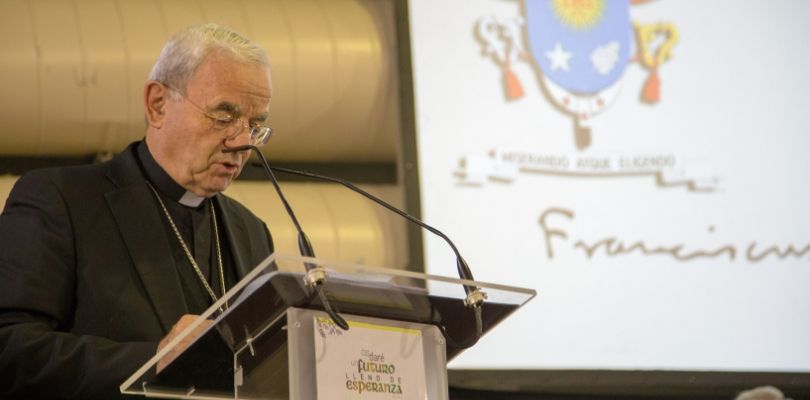 Monseñor Renzo Fratini lee el mensaje del Papa