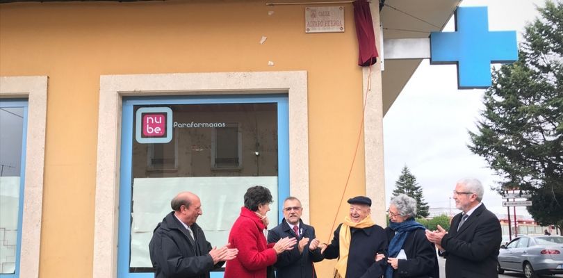 Descubrimiento de la placa con el nombre de la calle "Álvaro Huerga"